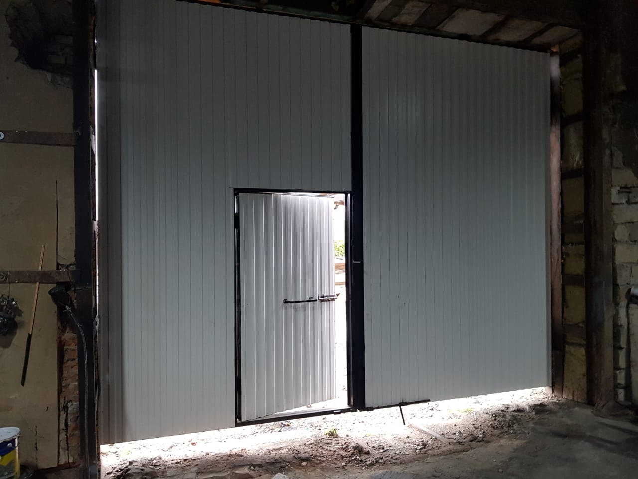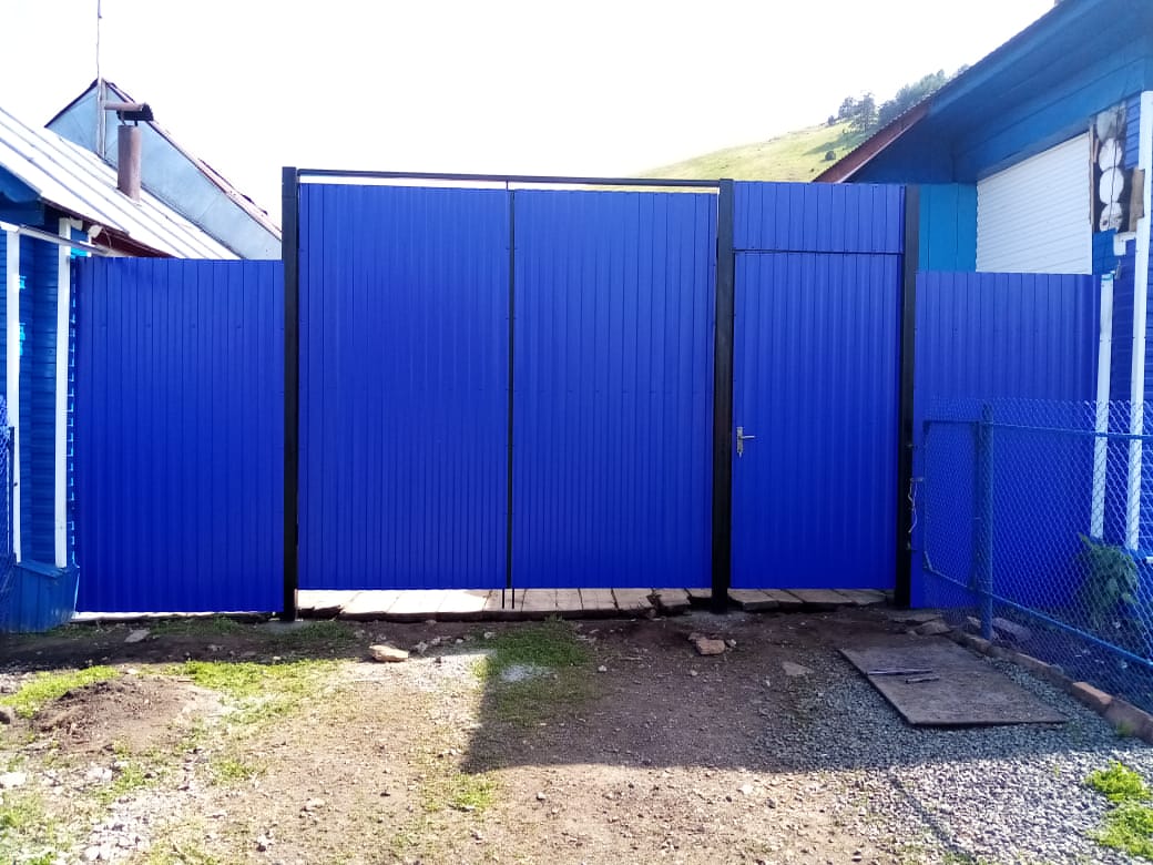 - снова распашных ворот состоит из алюминиевых профилей или стального листа. Это обеспечивает надежность и устойчивость изделия к ударам и взлому.