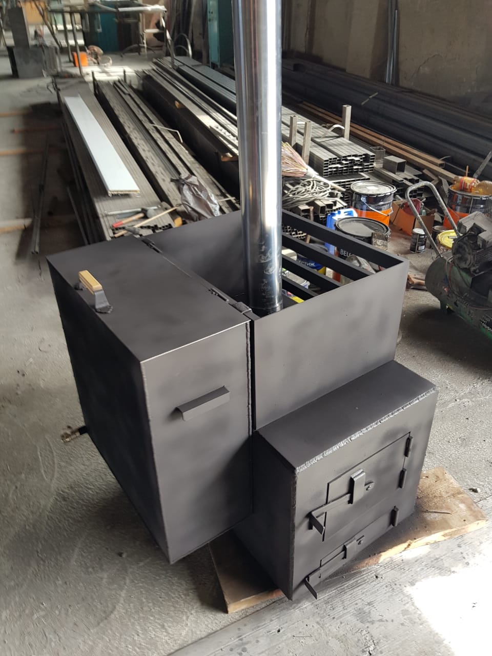 Наши печи, варятся из толстого металла(срок службы более 20 лет), с правильным дымоходом-пламегасителем, что гарантирует долговечность печи. дымоход не засоряется, печь не прогорит.